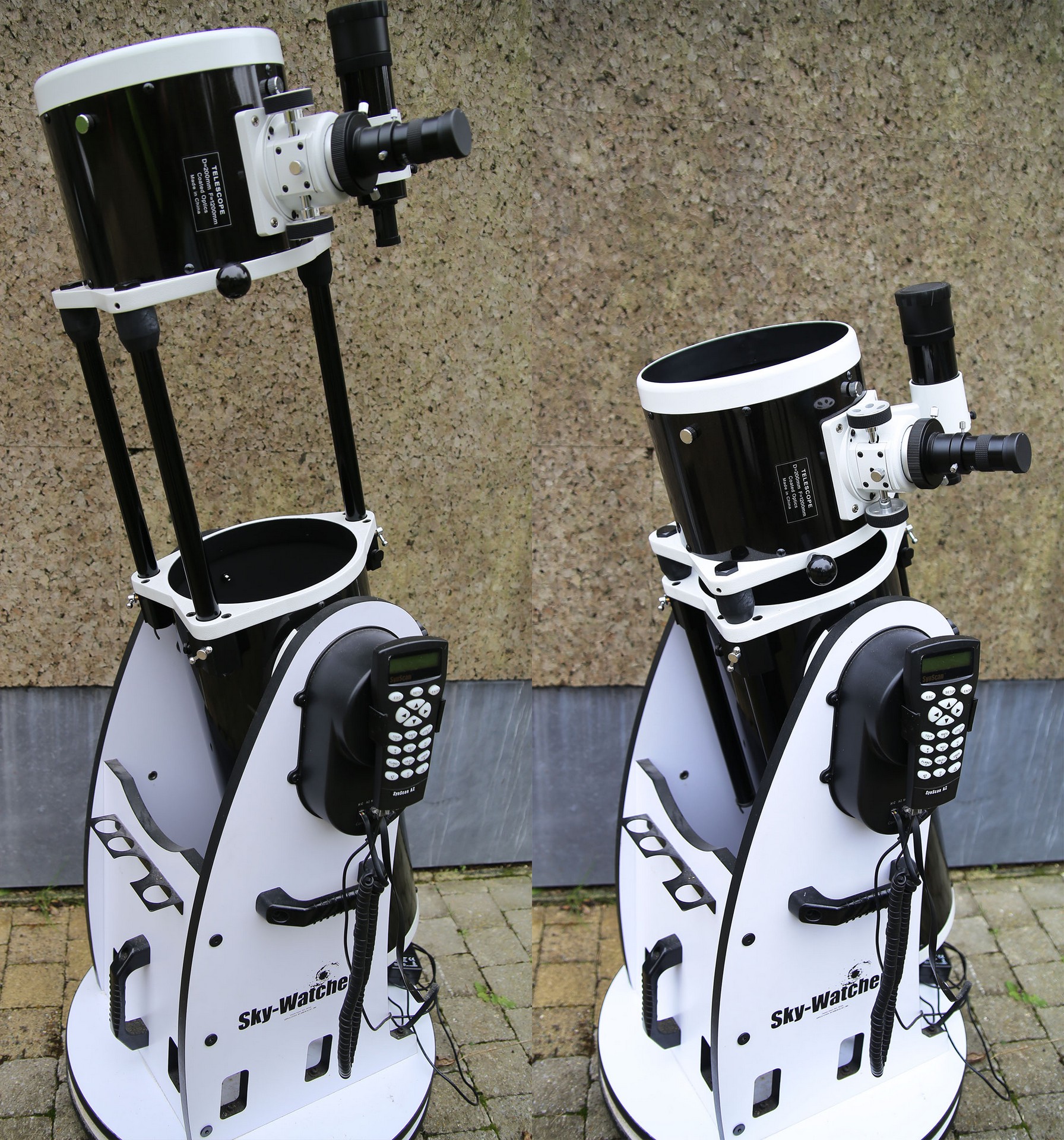 Na uitlijnen op twee sterren kent het toestel dan zelf de weg aan de hemel, én houdt ie ook alles in beeld. Die elektronica werkt op batterijen (8 AA's) of externe 12V-stroombron.