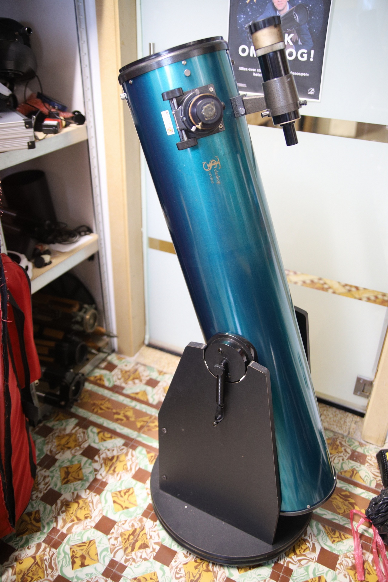 Een grote en dus lichtsterke newton-kijker, geplaatst op een