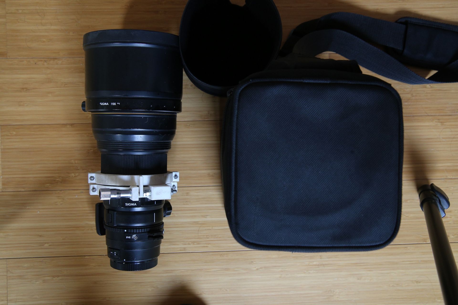 Wil u toch iets meer brandpunt, ga dan zeker voor deze Sigma-lens! Ook hier weer een héél snelle f/2.8-lens, en dat zie je aan het gewicht (2.600 gram reeds!) - maar het geheel blijft nog steeds véél hanteerbaarder als de meeste telescopen.