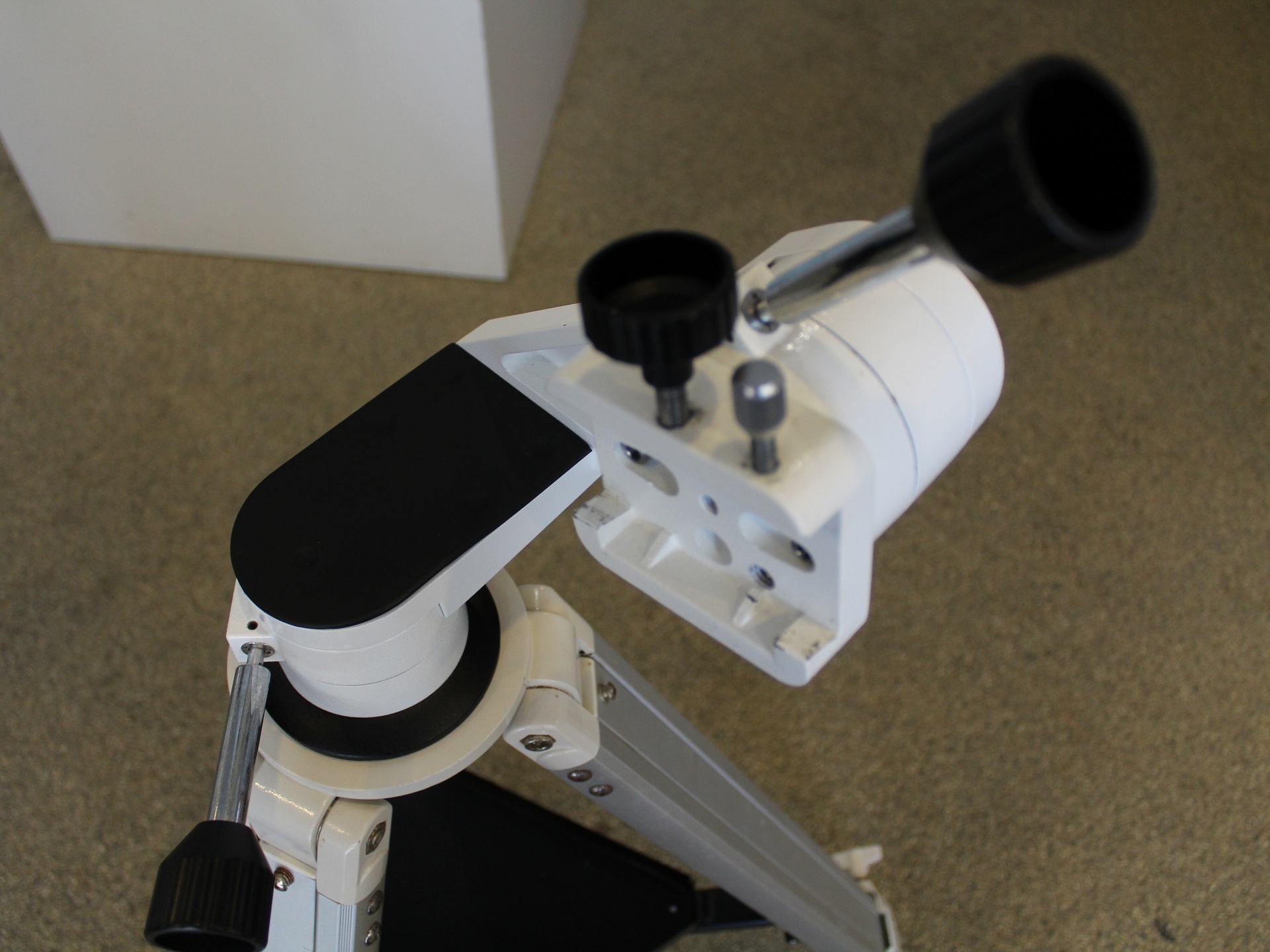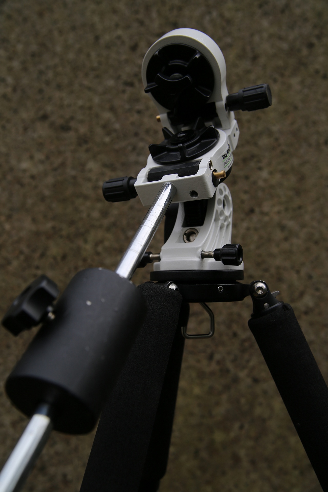 Wel kan deze montering alleen gebruikt worden in combinatie met de bijgeleverde stevige (maar niet té zware) astronomische driepoot. Dus minder aangewezen voor wie een telescoop wil meenemen op het vliegtuig...
