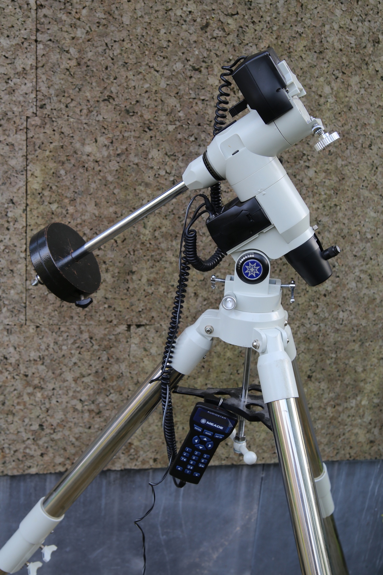 Er zijn twee exemplaren beschikbaar, ééntje ervan is al behoorlijk "bijgewerkt": heeft bijvoorbeeld ook een zwaluwstaartvatting die beide standaarden aankan (dus zowel de meer courante Vixen-style als de bredere Losmandy-style voor de zwaardere telescopen).