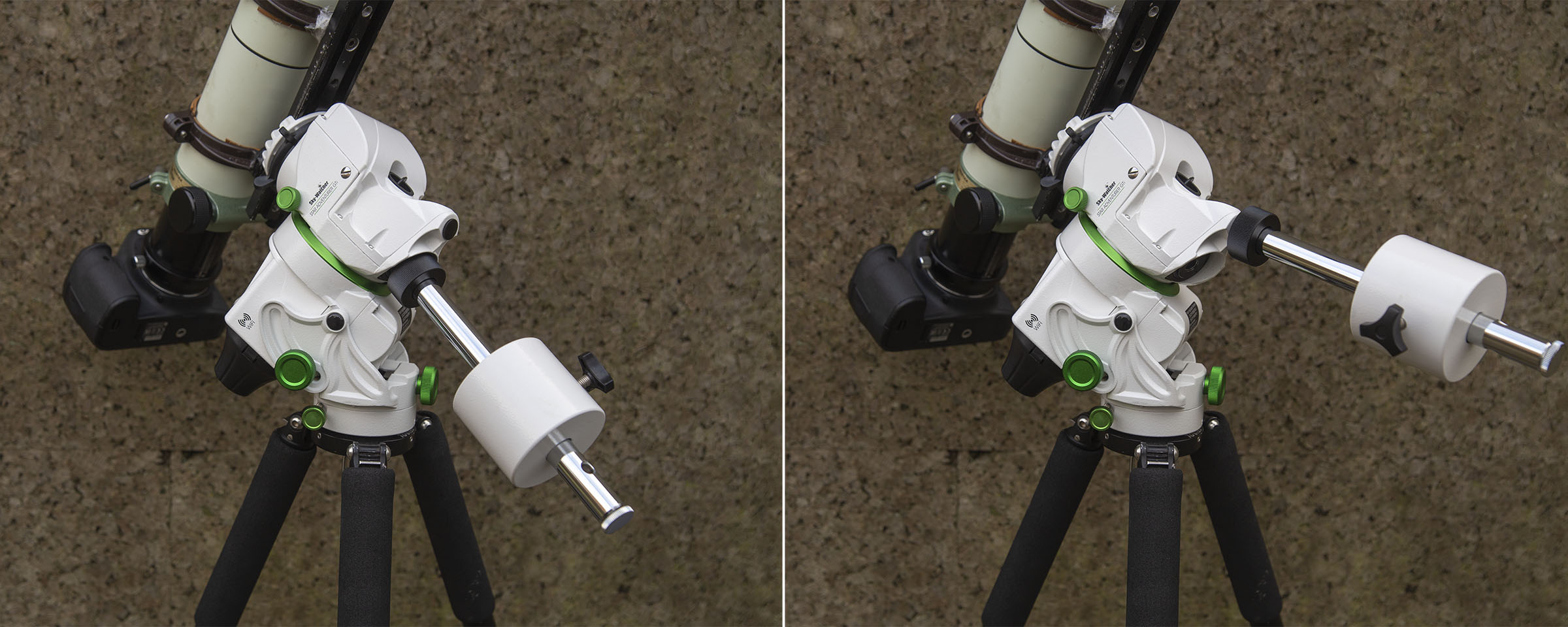 Hét ideale compromis tussen gewicht (nauwelijks 2,6kg) en gebruiksgemak, dus ideaal voor wie op een donkere vakantiebestemming wil sterrenkijken of -fotograferen met één van onze compacte reistelescopen (kortere lenzenkijkers of de kleine/middelgrote catadiopters). Kan geplaatst worden op een fotostatief of het lichte (carbon) statief van Skywatcher. En indien u het niet ziet zitten om een tegengewicht mee te sleuren: u kan die ook vervangen door een PET-fles (gevuld met zand of water) - wij hebben daarvoor de nodige koppelstukken ontwikkeld!